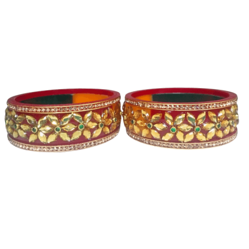 Each bangle features delicate green stone accents at the center of every flower, adding a pop of royal charm.
