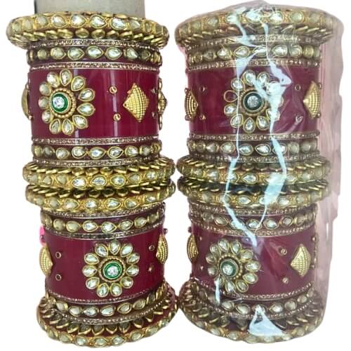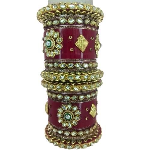 • Elegant bridal chuda set crafted in a rich maroon and antique gold finish