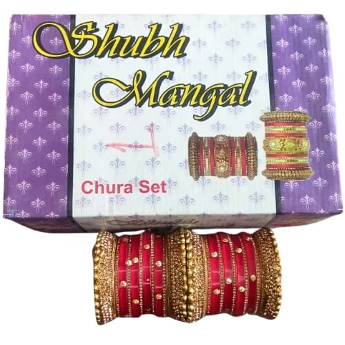 • Elegant bridal chuda set in a rich red and gold color combination