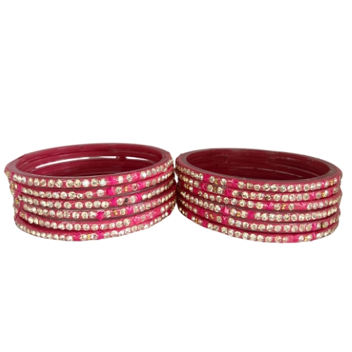 Elegant Design: Beautiful glass bangles adorned with sparkling crystal stones for a rich, festive look.