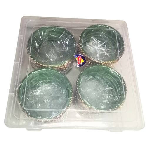Featuring a vibrant green base adorned with shimmering gold and silver stones, these bangles blend classic charm