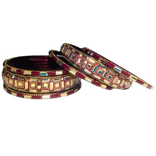Intricately designed with square mirror embellishments and vibrant red enamel, these bangles are perfect for weddings, festivals, and other special occasions.