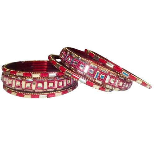 Intricately designed with square mirror embellishments and vibrant red enamel, these bangles are perfect for weddings, festivals, and other special occasions.