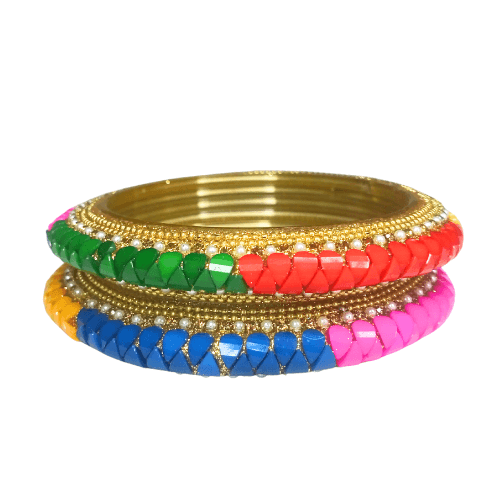 Enhance your traditional look with this exquisite 2-piece twisted glass kangan set. Designed with elegance and craftsmanship, these bangles feature a unique twisted pattern that adds a stylish touch to any outfit. Made from high-quality glass, they offer a blend of tradition and modern charm, making them perfect for festive occasions, weddings, or daily wear.