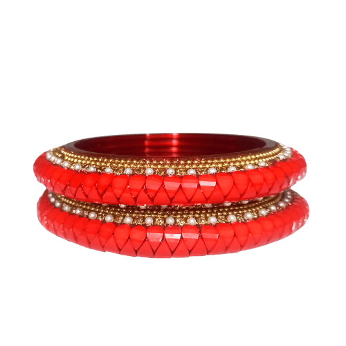 Enhance your traditional look with this exquisite 2-piece twisted glass kangan set. Designed with elegance and craftsmanship, these bangles feature a unique twisted pattern that adds a stylish touch to any outfit. Made from high-quality glass, they offer a blend of tradition and modern charm, making them perfect for festive occasions, weddings, or daily wear.