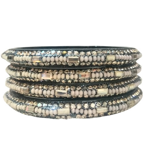 Elegant Beaded Crystal 4-Piece Bangles