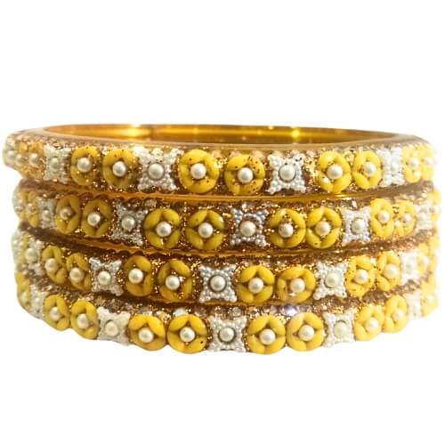 Sunflower Pearl Embellished Traditional 4-Piece Bangles